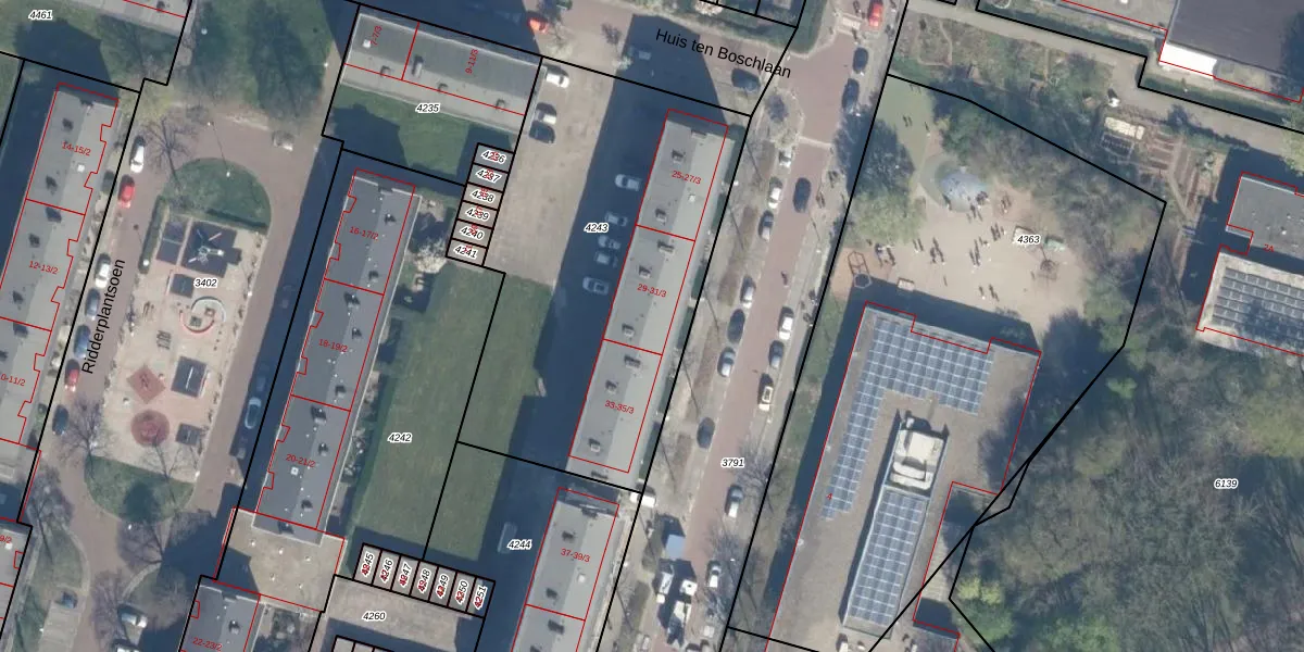Ridderlaan 31-3 is gelegen op kadastraal perceel UTT00P4243. Deze kadastrale aanduiding is uniek en wordt gebruikt door het Kadaster om eigendomsrechten en andere zakelijke rechten vast te leggen. Het perceel maakt onderdeel uit van de kadastrale gemeente Utrecht.