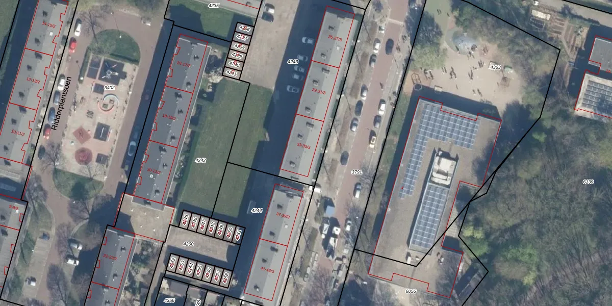 Ridderlaan 35-1 is gelegen op kadastraal perceel UTT00P4243. Deze kadastrale aanduiding is uniek en wordt gebruikt door het Kadaster om eigendomsrechten en andere zakelijke rechten vast te leggen. Het perceel maakt onderdeel uit van de kadastrale gemeente Utrecht.