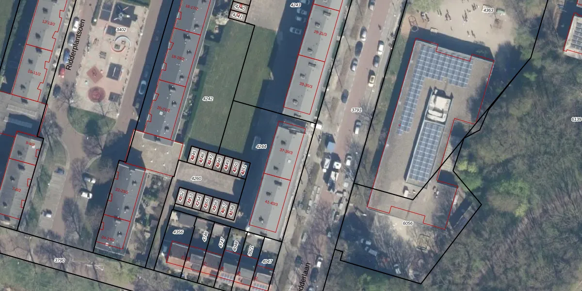 Ridderlaan 37-1 is gelegen op kadastraal perceel UTT00P4244. Deze kadastrale aanduiding is uniek en wordt gebruikt door het Kadaster om eigendomsrechten en andere zakelijke rechten vast te leggen. Het perceel maakt onderdeel uit van de kadastrale gemeente Utrecht.