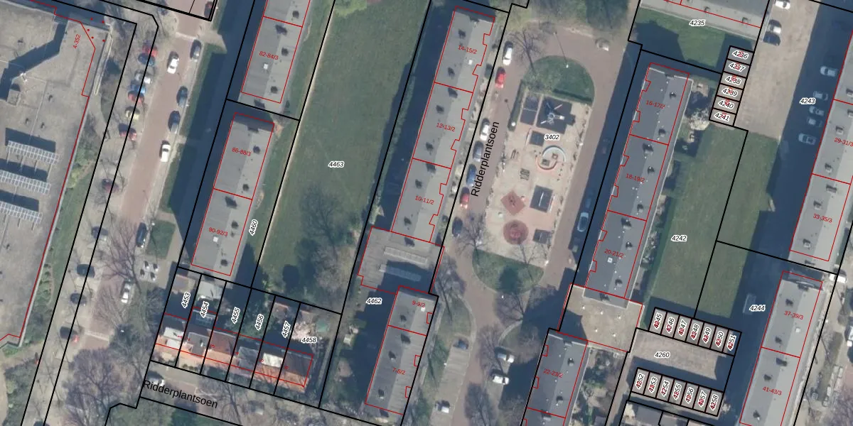 Ridderplantsoen 10-1 is gelegen op kadastraal perceel UTT00P4462. Deze kadastrale aanduiding is uniek en wordt gebruikt door het Kadaster om eigendomsrechten en andere zakelijke rechten vast te leggen. Het perceel maakt onderdeel uit van de kadastrale gemeente Utrecht.