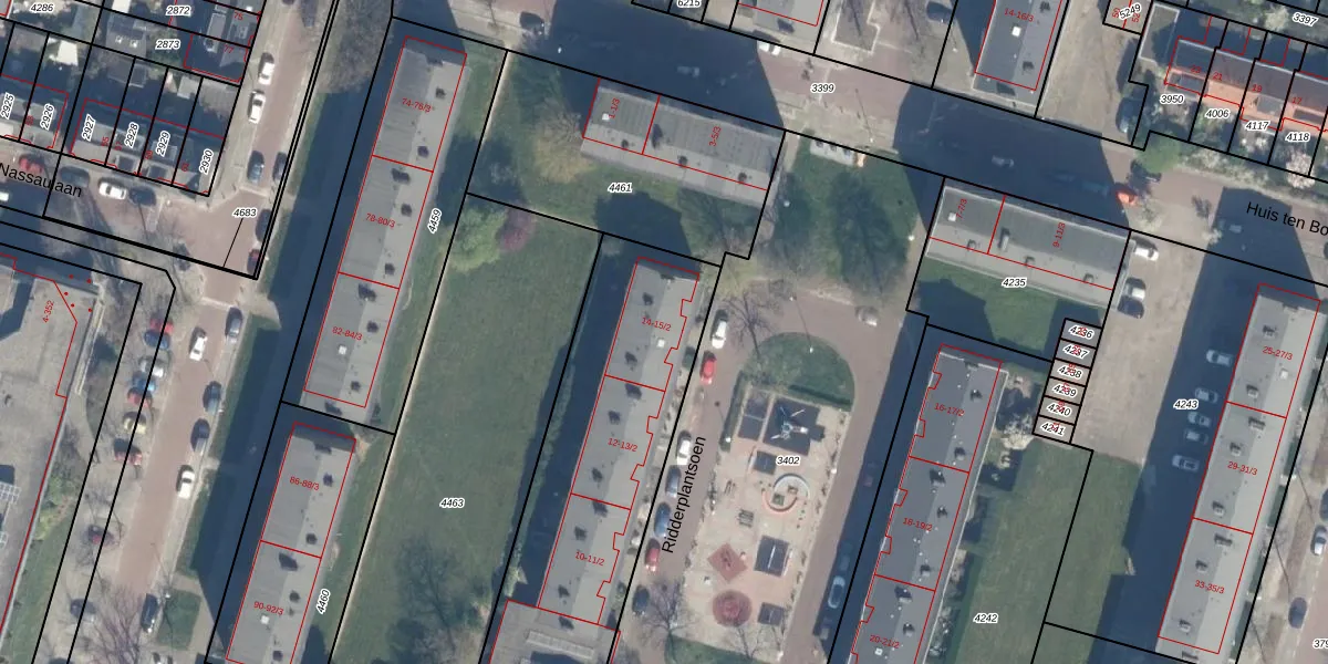 Het perceel waarop Ridderplantsoen 14 staat heeft een oppervlakte van 1953 m². Dit is een zeer groot perceel. De perceeloppervlakte wordt geregistreerd door het Kadaster. Gedetailleerde informatie over de maten van dit perceel kunt u vinden in het rapport Kadastrale kaart met maatvoering van Ridderplantsoen 14.