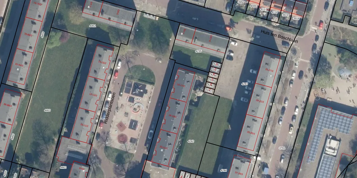 Het adres is gelegen op perceel 4242 in de sectie P en de kadastrale gemeente Utrecht. De kadastrale aanduiding is aldus UTT00-P-4242. De oppervlakte van het perceel is 2415 m². Dat is groter dan gemiddeld in Utrecht, waar de gemiddelde perceeloppervlakte op 1438,66 m² ligt. Het kleinste perceel in de kadastrale gemeente is 0 m² groot. De grootste perceeloppervlakte is 90,1 ha. Er zijn 27 adressen aanwezig op het perceel. In de Basisregistratie Kadaster (BRK) werden de grenzen van het perceel geregistreerd op 19-09-1997.