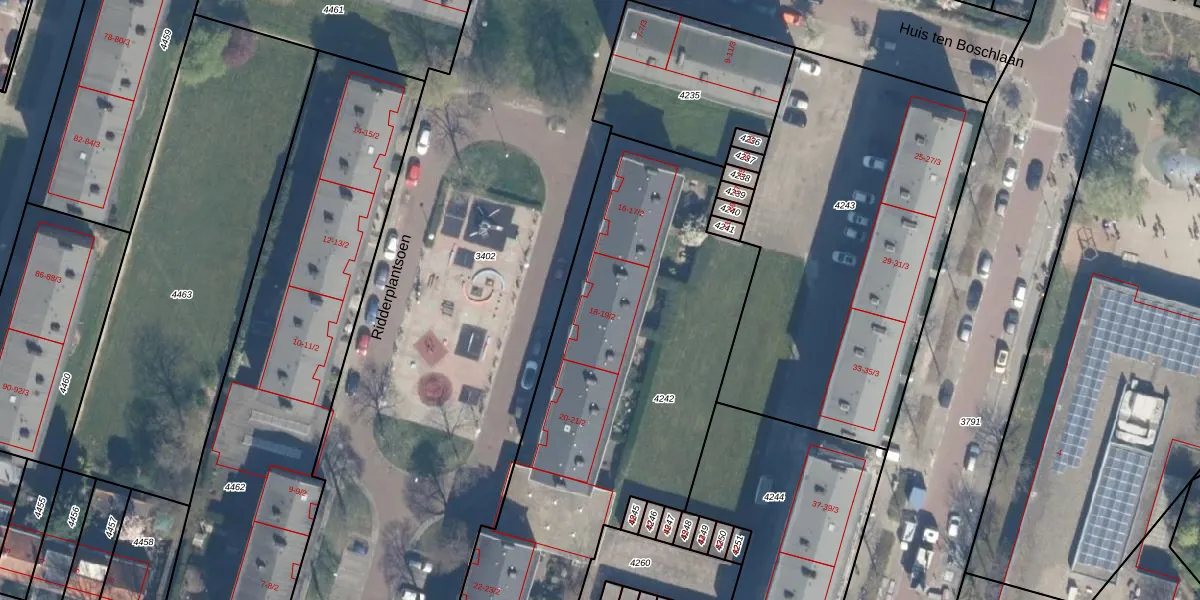 Ridderplantsoen 18-1 is gelegen op kadastraal perceel UTT00P4242. Deze kadastrale aanduiding is uniek en wordt gebruikt door het Kadaster om eigendomsrechten en andere zakelijke rechten vast te leggen. Het perceel maakt onderdeel uit van de kadastrale gemeente Utrecht.