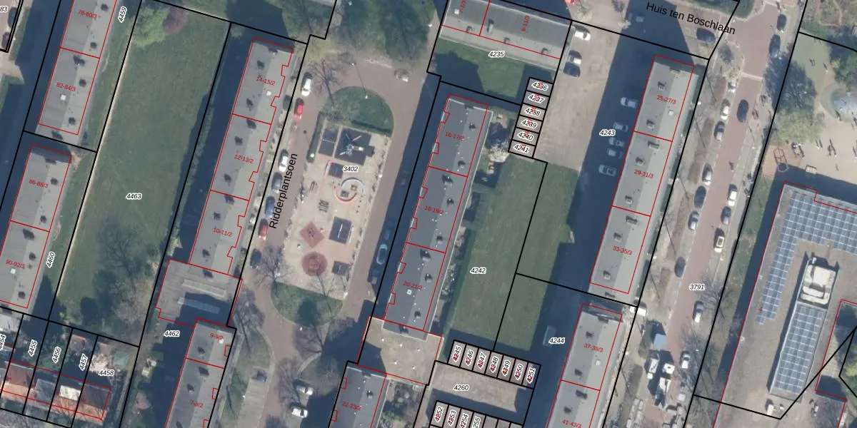 Ridderplantsoen 19 is gelegen op kadastraal perceel UTT00P4242. Deze kadastrale aanduiding is uniek en wordt gebruikt door het Kadaster om eigendomsrechten en andere zakelijke rechten vast te leggen. Het perceel maakt onderdeel uit van de kadastrale gemeente Utrecht.