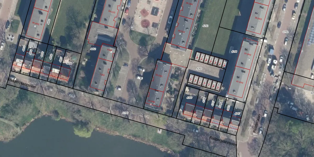 Het perceel waarop Ridderplantsoen 23-1 staat heeft een oppervlakte van 2415 m². Dit is een zeer groot perceel. De perceeloppervlakte wordt geregistreerd door het Kadaster. Gedetailleerde informatie over de maten van dit perceel kunt u vinden in het rapport Kadastrale kaart met maatvoering van Ridderplantsoen 23-1.