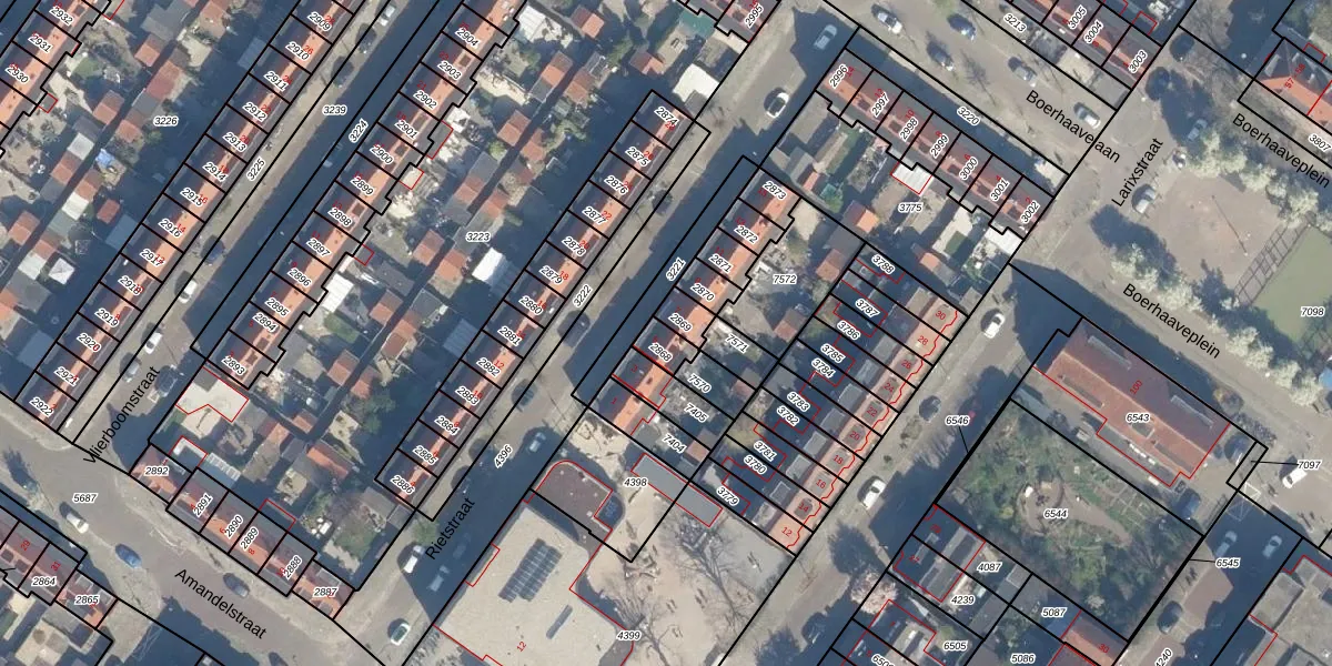 Gebruik de zoekbalk of klik op een perceel voor informatie over de adressen binnen dit perceel.