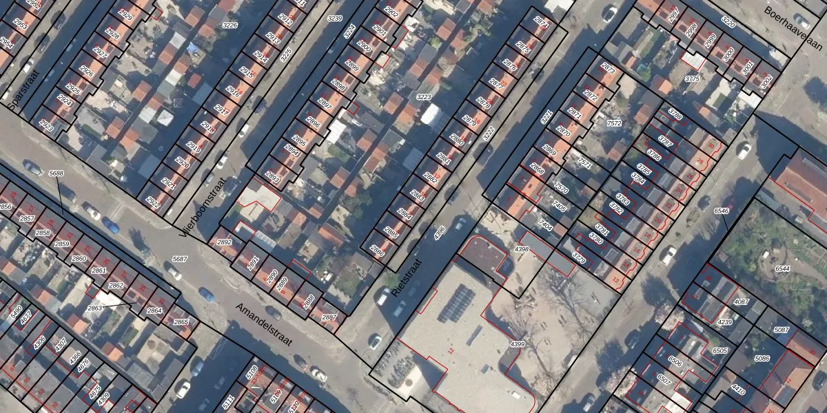 Gebruik de zoekbalk of klik op een perceel voor informatie over de adressen binnen dit perceel.