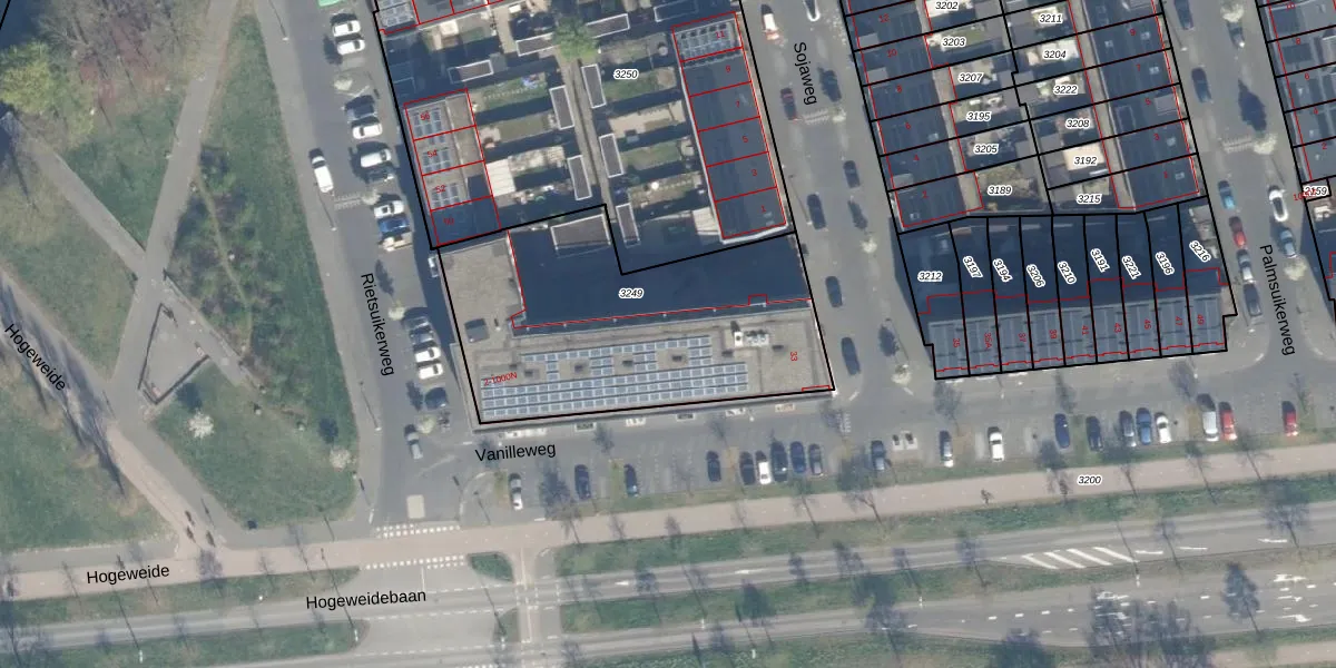 Het adres ligt op het perceel CTR00-F-3249, dat zich in de kadastrale gemeente Catharijne bevindt. Het perceel is met 1355 m² relatief groot. Het gemiddelde ligt in de kadastrale gemeente Catharijne op 828,25 m². Het kleinste perceel in de kadastrale gemeente is 0 m² groot. De grootste perceeloppervlakte is 35,6 ha. Op het perceel liggen in totaal 26 adressen. De huidige grenzen van het perceel zijn digitaal in de Basisregistratie Kadaster (BRK) geregistreerd op 04-09-2018.