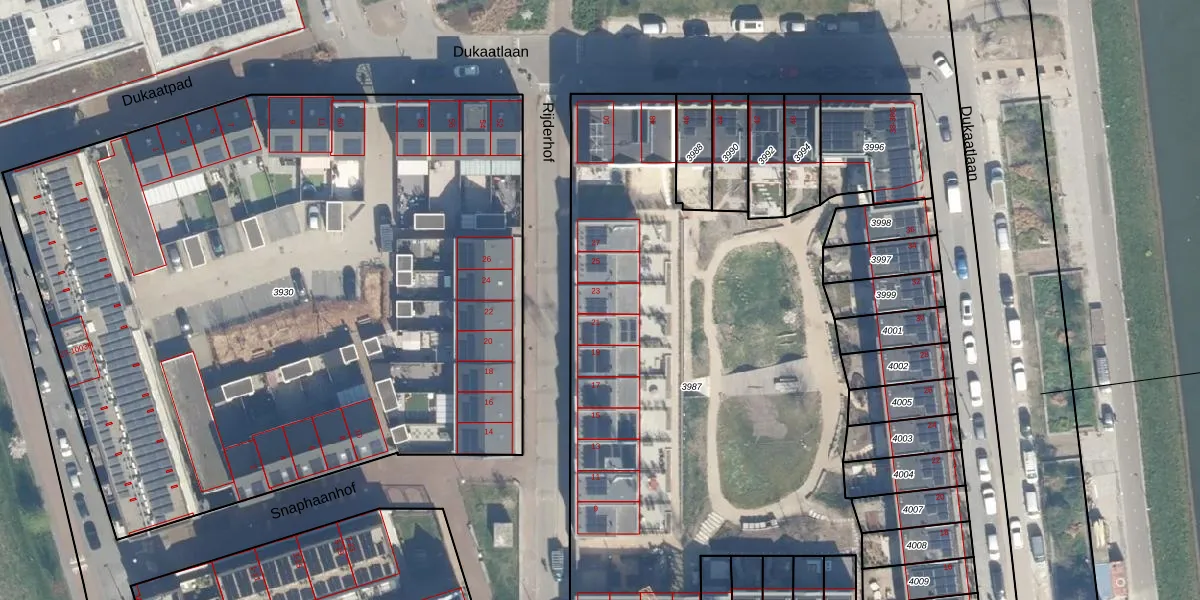 Het perceel waarop Rijderhof 23 staat heeft een oppervlakte van 3320 m². Dit is een zeer groot perceel. De perceeloppervlakte wordt geregistreerd door het Kadaster. Gedetailleerde informatie over de maten van dit perceel kunt u vinden in het rapport Kadastrale kaart met maatvoering van Rijderhof 23.
