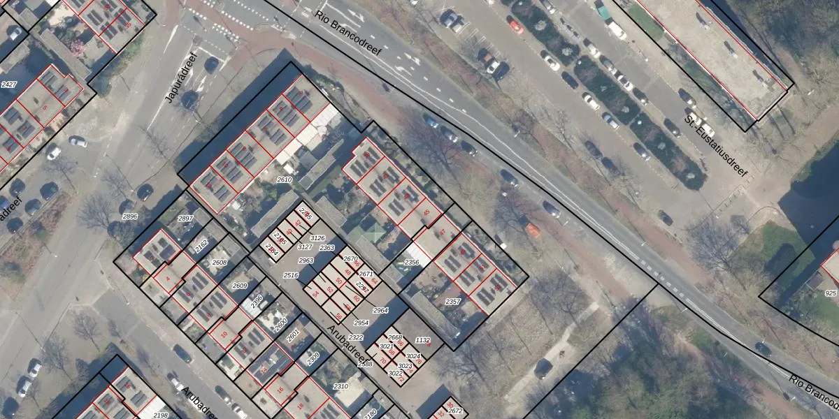 Rio Brancodreef 45 is gelegen op kadastraal perceel UTT00F2610. Deze kadastrale aanduiding is uniek en wordt gebruikt door het Kadaster om eigendomsrechten en andere zakelijke rechten vast te leggen. Het perceel maakt onderdeel uit van de kadastrale gemeente Utrecht.