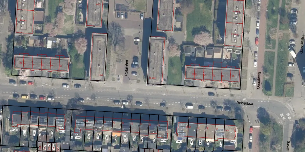 Het perceel waarop Robijnhof 18 staat heeft een oppervlakte van 7548 m². Dit is een zeer groot perceel. De perceeloppervlakte wordt geregistreerd door het Kadaster. Gedetailleerde informatie over de maten van dit perceel kunt u vinden in het rapport Kadastrale kaart met maatvoering van Robijnhof 18.