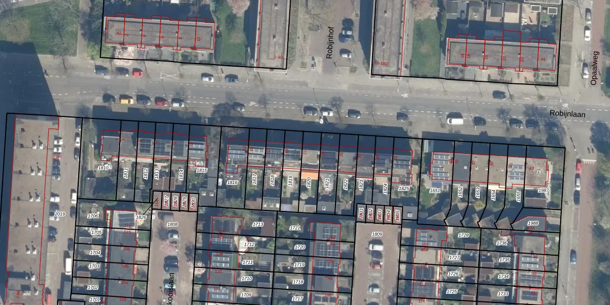 Het perceel waarop Robijnlaan 21 staat heeft een oppervlakte van 158 m². Dit is een middelgroot perceel. De perceeloppervlakte wordt geregistreerd door het Kadaster. Gedetailleerde informatie over de maten van dit perceel kunt u vinden in het rapport Kadastrale kaart met maatvoering van Robijnlaan 21.