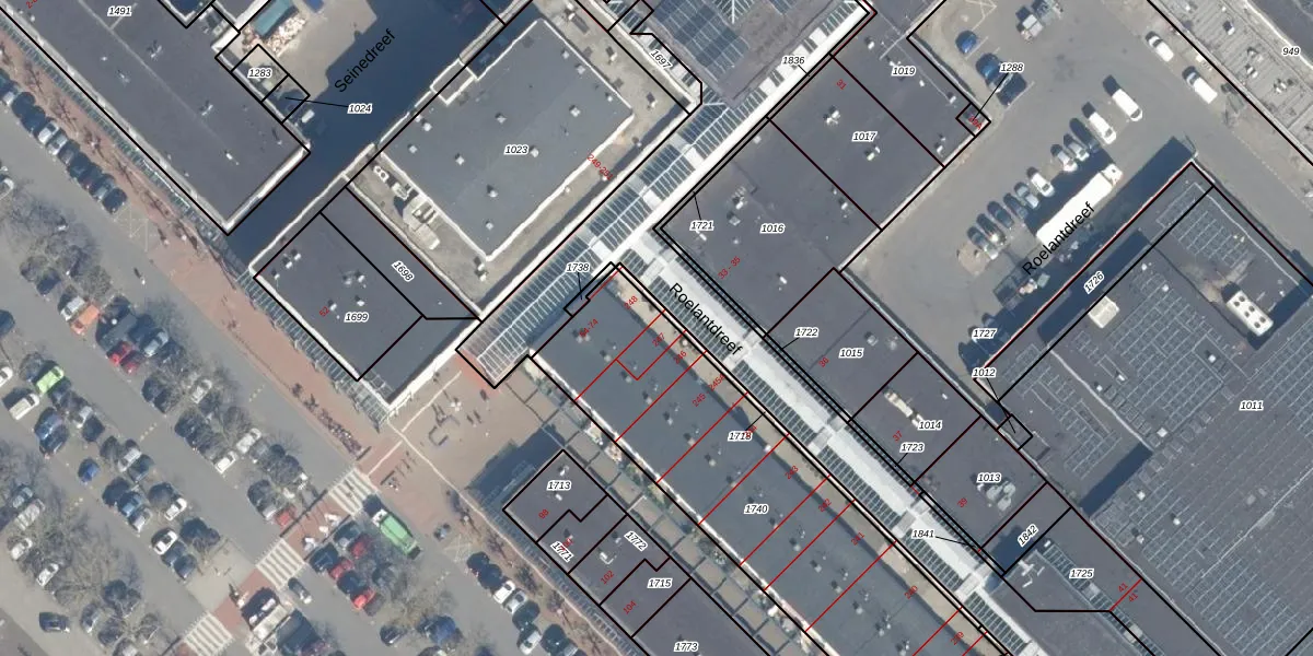Het perceel waarop Roelantdreef 247 staat heeft een oppervlakte van 1890 m². Dit is een zeer groot perceel. De perceeloppervlakte wordt geregistreerd door het Kadaster. Gedetailleerde informatie over de maten van dit perceel kunt u vinden in het rapport Kadastrale kaart met maatvoering van Roelantdreef 247.