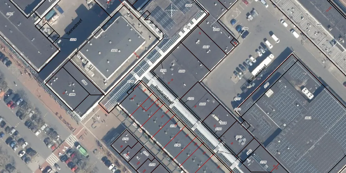 Het perceel waarop Roelantdreef 35 staat heeft een oppervlakte van 546 m². Dit is een groot perceel. De perceeloppervlakte wordt geregistreerd door het Kadaster. Gedetailleerde informatie over de maten van dit perceel kunt u vinden in het rapport Kadastrale kaart met maatvoering van Roelantdreef 35.