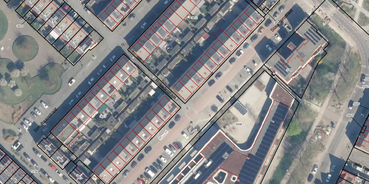 Rokadestraat 1 is gelegen op kadastraal perceel ZLN02B3812. Deze kadastrale aanduiding is uniek en wordt gebruikt door het Kadaster om eigendomsrechten en andere zakelijke rechten vast te leggen. Het perceel maakt onderdeel uit van de kadastrale gemeente Zuilen.