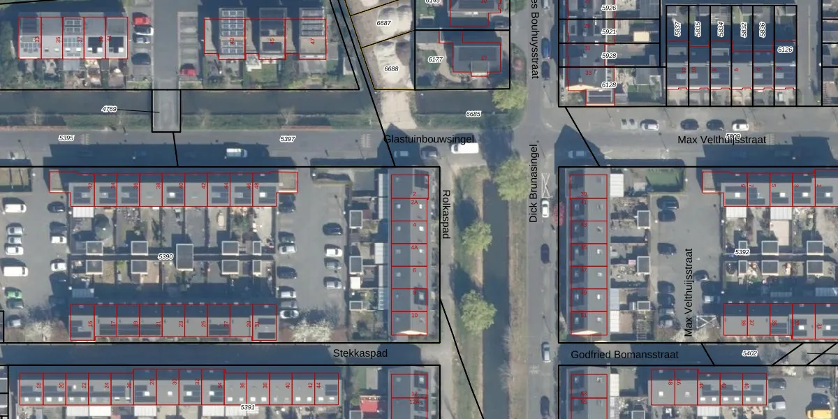 Het adres is gelegen op perceel 5390 in de sectie V en de kadastrale gemeente Utrecht. De kadastrale aanduiding is aldus UTT00-V-5390. De gemiddelde perceeloppervlakte in de kadastrale gemeente Utrecht is 1439,02 m². Dit perceel is met zijn 4820 m² dus groter dan gemiddeld. Het kleinste perceel in de kadastrale gemeente is 0 m² groot. De grootste perceeloppervlakte is 90,1 ha. Op het perceel liggen in totaal 28 adressen. De huidige grenzen van het perceel zijn digitaal in de Basisregistratie Kadaster (BRK) geregistreerd op 26-04-2018.