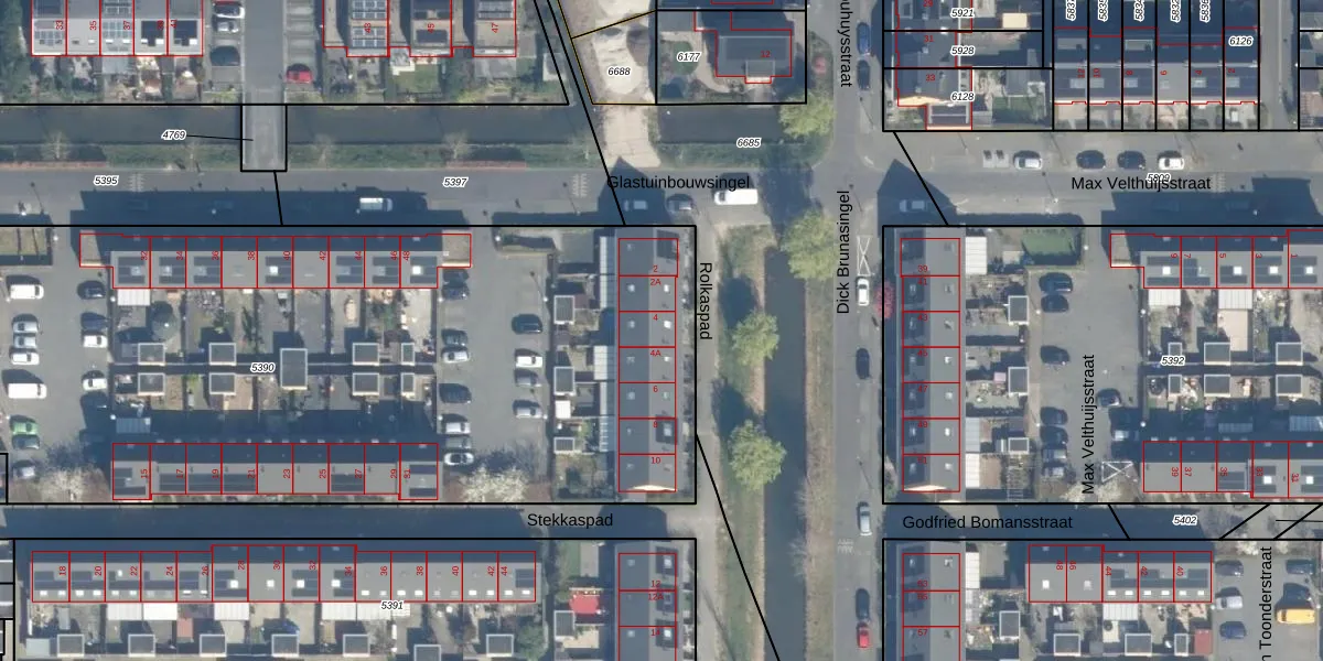 Rolkaspad 4 is gelegen op kadastraal perceel UTT00V5390. Deze kadastrale aanduiding is uniek en wordt gebruikt door het Kadaster om eigendomsrechten en andere zakelijke rechten vast te leggen. Het perceel maakt onderdeel uit van de kadastrale gemeente Utrecht.