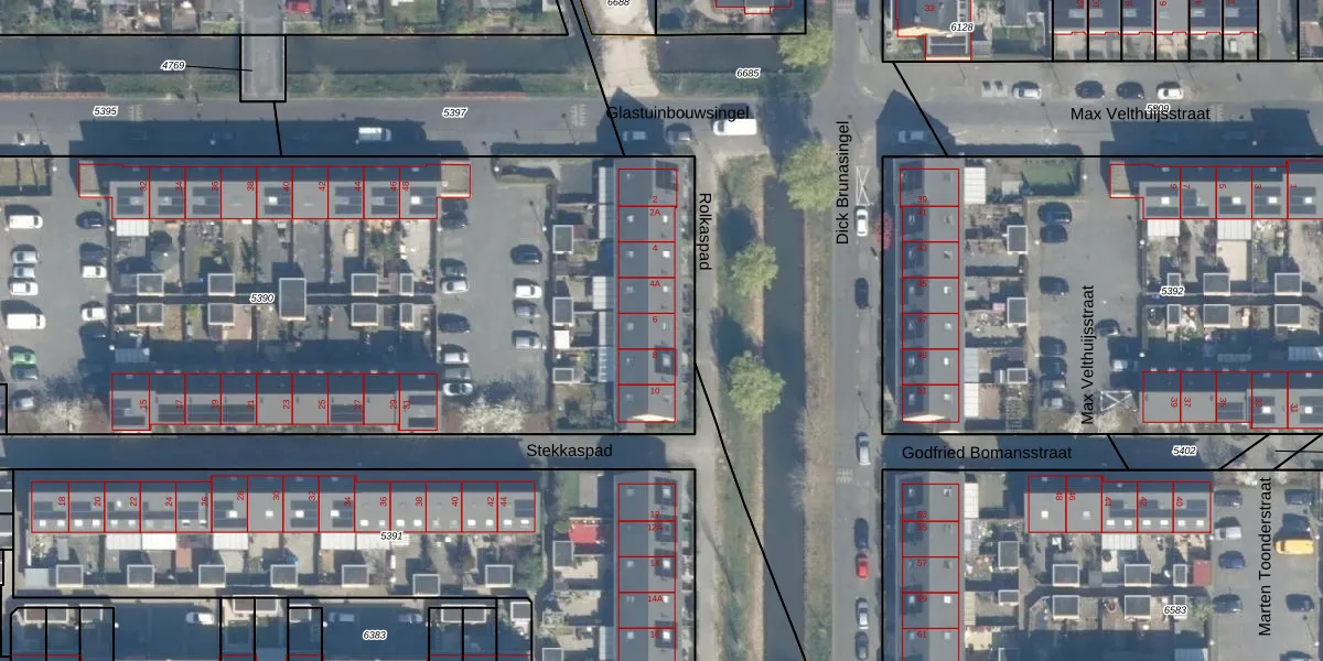 Rolkaspad 6 is gelegen op kadastraal perceel UTT00V5390. Deze kadastrale aanduiding is uniek en wordt gebruikt door het Kadaster om eigendomsrechten en andere zakelijke rechten vast te leggen. Het perceel maakt onderdeel uit van de kadastrale gemeente Utrecht.