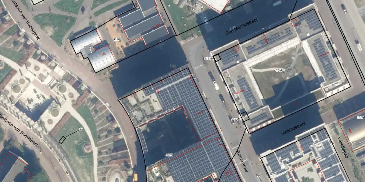 Het perceel waarop Romestraat 134 staat heeft een oppervlakte van 4135 m². Dit is een zeer groot perceel. De perceeloppervlakte wordt geregistreerd door het Kadaster. Gedetailleerde informatie over de maten van dit perceel kunt u vinden in het rapport Kadastrale kaart met maatvoering van Romestraat 134.