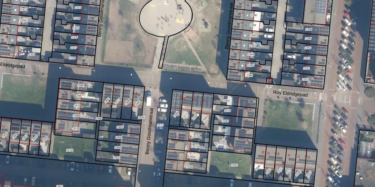 Gebruik de zoekbalk of klik op een perceel voor informatie over de adressen binnen dit perceel.