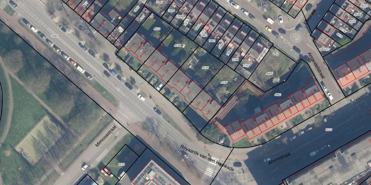 Het perceel waarop Royaards van den Hamkade 7-1 staat heeft een oppervlakte van 569 m². Dit is een groot perceel. De perceeloppervlakte wordt geregistreerd door het Kadaster. Gedetailleerde informatie over de maten van dit perceel kunt u vinden in het rapport Kadastrale kaart met maatvoering van Royaards van den Hamkade 7-1.