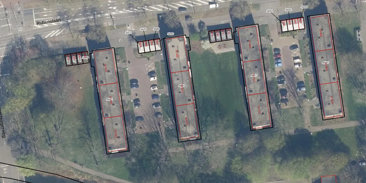 Het perceel waarop Rubenslaan 59-1 staat heeft een oppervlakte van 695 m². Dit is een groot perceel. De perceeloppervlakte wordt geregistreerd door het Kadaster. Gedetailleerde informatie over de maten van dit perceel kunt u vinden in het rapport Kadastrale kaart met maatvoering van Rubenslaan 59-1.