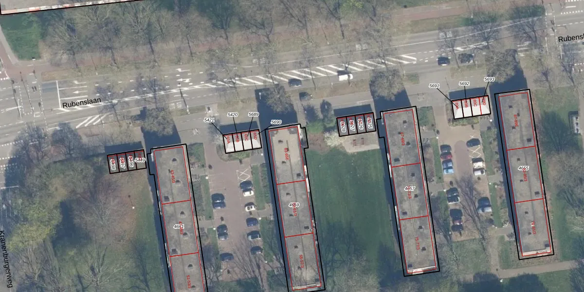 Het perceel waarop Rubenslaan 65 staat heeft een oppervlakte van 695 m². Dit is een groot perceel. De perceeloppervlakte wordt geregistreerd door het Kadaster. Gedetailleerde informatie over de maten van dit perceel kunt u vinden in het rapport Kadastrale kaart met maatvoering van Rubenslaan 65.