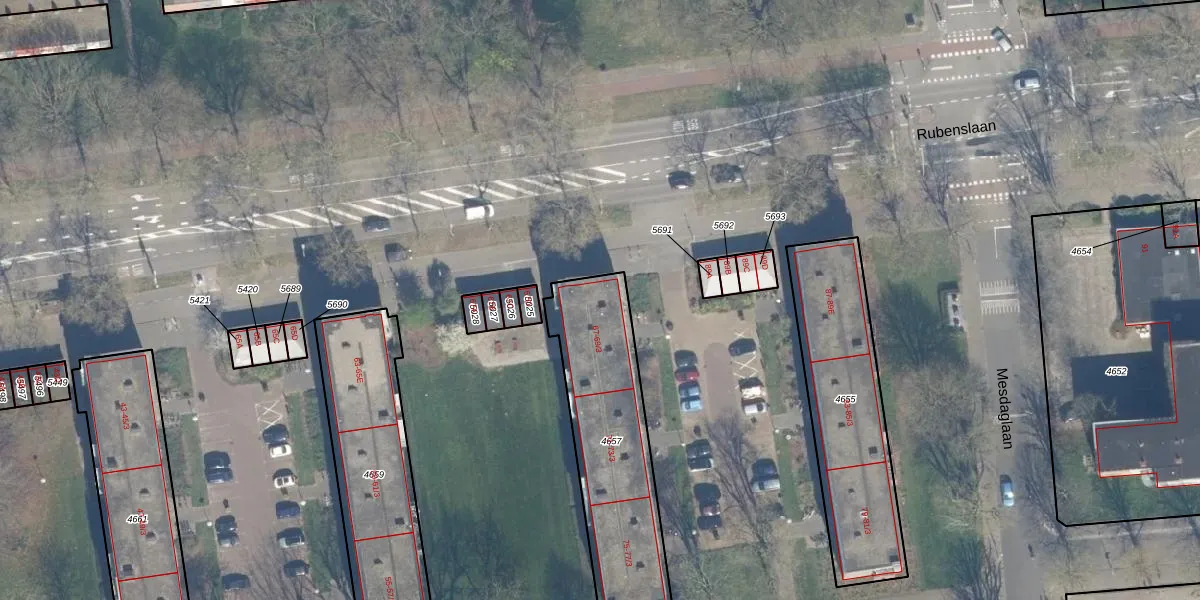 Het perceel waarop Rubenslaan 67-E staat heeft een oppervlakte van 695 m². Dit is een groot perceel. De perceeloppervlakte wordt geregistreerd door het Kadaster. Gedetailleerde informatie over de maten van dit perceel kunt u vinden in het rapport Kadastrale kaart met maatvoering van Rubenslaan 67-E.