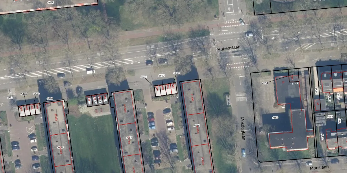 Rubenslaan 89-D is gelegen op kadastraal perceel ASD40D5693. Deze kadastrale aanduiding is uniek en wordt gebruikt door het Kadaster om eigendomsrechten en andere zakelijke rechten vast te leggen. Het perceel maakt onderdeel uit van de kadastrale gemeente Abstede.