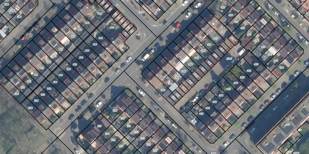 Het adres is gelegen op perceel 352 in de sectie H en de kadastrale gemeente Utrecht. De kadastrale aanduiding is aldus UTT00-H-352. Het perceel is 164 m² groot. Dat is kleiner dan de gemiddelde perceeloppervlakte in Utrecht, dat op 1439,25 m² ligt. Het kleinste perceel in de kadastrale gemeente is 0 m² groot. De grootste perceeloppervlakte is 90,1 ha. Op het perceel liggen in totaal 2 adressen. De huidige grenzen van het perceel zijn digitaal in de Basisregistratie Kadaster (BRK) geregistreerd op 19-09-1997.