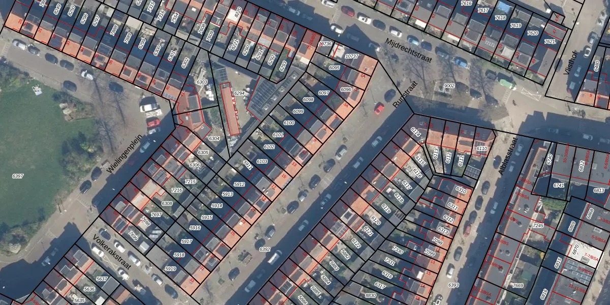 Gebruik de zoekbalk of klik op een perceel voor informatie over de adressen binnen dit perceel.
