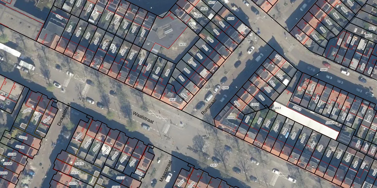 Gebruik de zoekbalk of klik op een perceel voor informatie over de adressen binnen dit perceel.