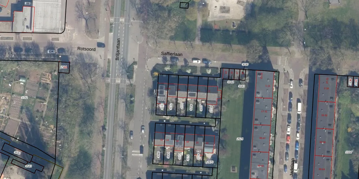 Gebruik de zoekbalk of klik op een perceel voor informatie over de adressen binnen dit perceel.