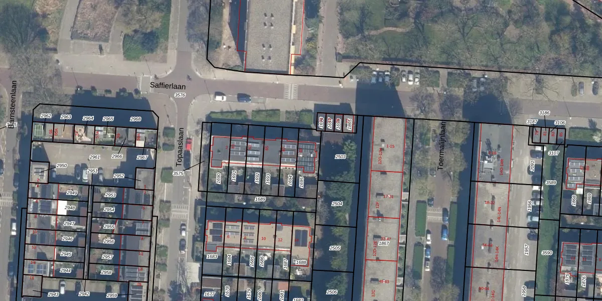 Saffierlaan 69 is gelegen op kadastraal perceel TSG00B1695. Deze kadastrale aanduiding is uniek en wordt gebruikt door het Kadaster om eigendomsrechten en andere zakelijke rechten vast te leggen. Het perceel maakt onderdeel uit van de kadastrale gemeente Tolsteeg.