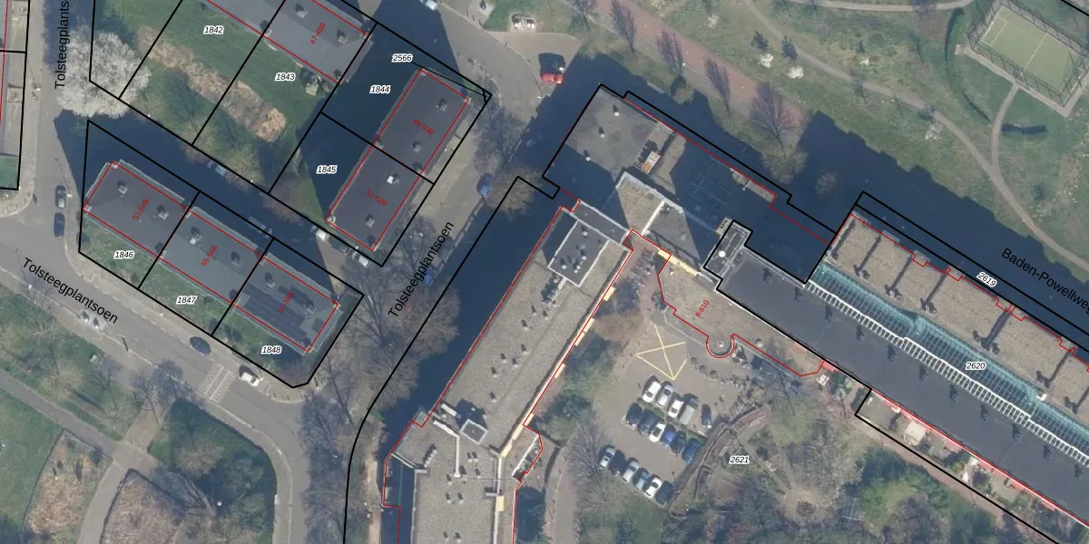 Het adres ligt op het perceel TSG00-B-2621, dat zich in de kadastrale gemeente Tolsteeg bevindt. De oppervlakte van het perceel is 8350 m². Dat is groter dan gemiddeld in Tolsteeg, waar de gemiddelde perceeloppervlakte op 654,25 m² ligt. Het grootste perceel in de kadastrale gemeente is 20,6 ha. Het kleinste perceel heeft een oppervlakte van 0 m². Op het perceel zijn 278 adressen aanwezig. In de Basisregistratie Kadaster (BRK) werden de grenzen van het perceel geregistreerd op 05-11-2010.