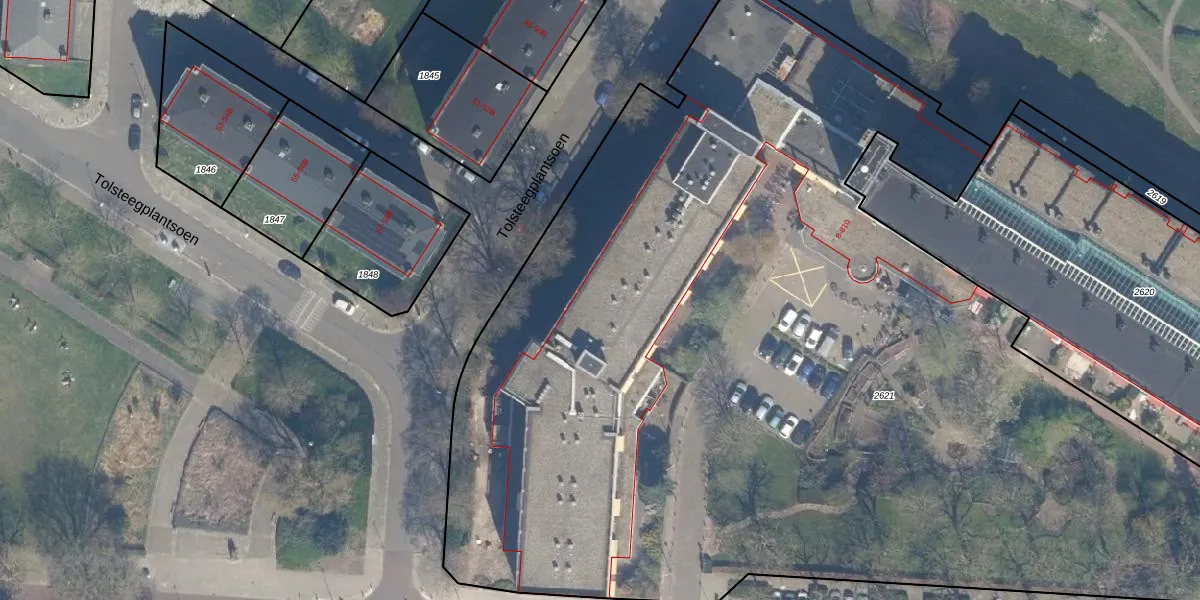 Het adres ligt op het perceel TSG00-B-2621, dat zich in de kadastrale gemeente Tolsteeg bevindt. De oppervlakte van het perceel is 8350 m². Dat is groter dan gemiddeld in Tolsteeg, waar de gemiddelde perceeloppervlakte op 654,25 m² ligt. Het grootste perceel in de kadastrale gemeente is 20,6 ha. Het kleinste perceel heeft een oppervlakte van 0 m². Op het perceel liggen in totaal 278 adressen. De laatste wijziging in het de Basisregistratie Kadaster (BRK) was op 05-11-2010.