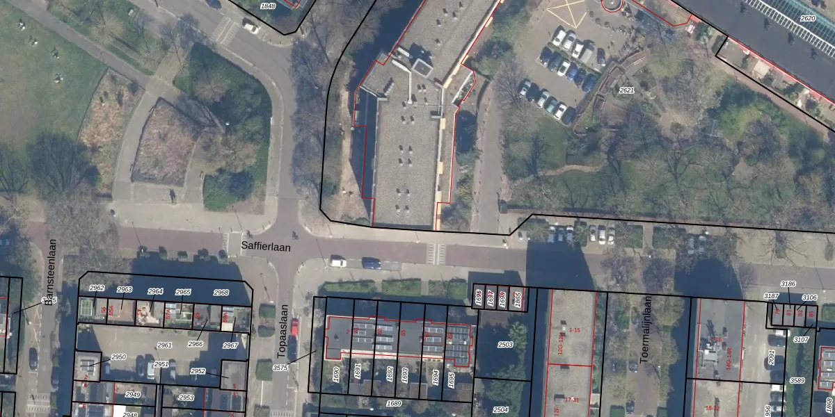Saffierlaan 8-427 is gelegen op kadastraal perceel TSG00B2621. Deze kadastrale aanduiding is uniek en wordt gebruikt door het Kadaster om eigendomsrechten en andere zakelijke rechten vast te leggen. Het perceel maakt onderdeel uit van de kadastrale gemeente Tolsteeg.