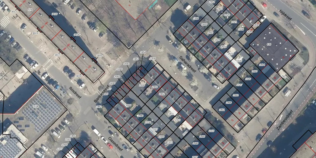 Saharadreef 3 is gelegen op kadastraal perceel UTT00F2450. Deze kadastrale aanduiding is uniek en wordt gebruikt door het Kadaster om eigendomsrechten en andere zakelijke rechten vast te leggen. Het perceel maakt onderdeel uit van de kadastrale gemeente Utrecht.