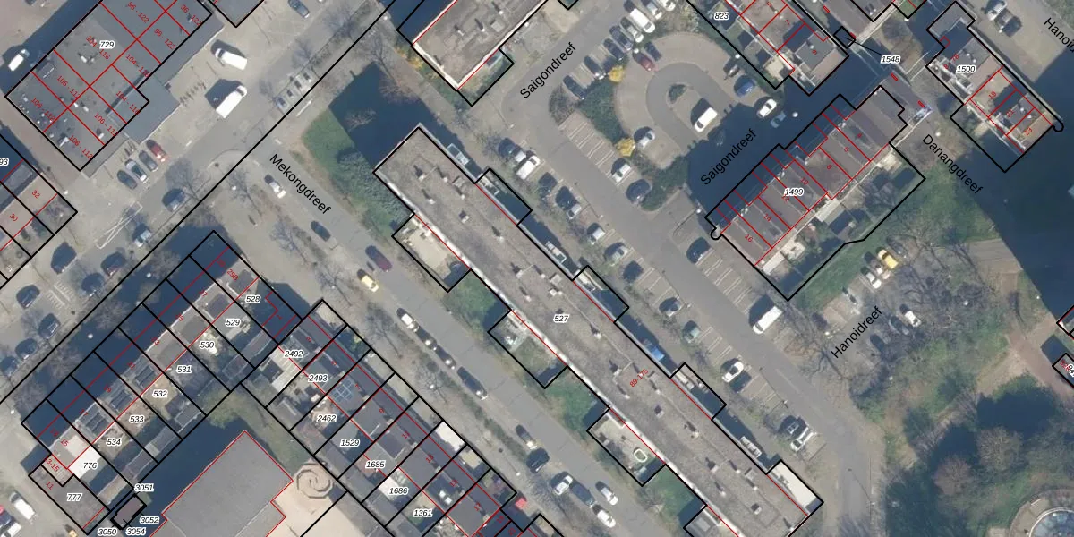 Het perceel waarop Saigondreef 117 staat heeft een oppervlakte van 1743 m². Dit is een zeer groot perceel. De perceeloppervlakte wordt geregistreerd door het Kadaster. Gedetailleerde informatie over de maten van dit perceel kunt u vinden in het rapport Kadastrale kaart met maatvoering van Saigondreef 117.