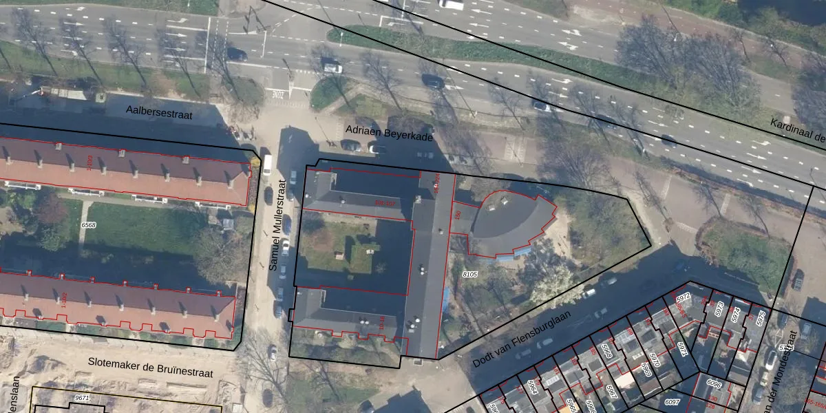 Het perceel waarop Samuel Mullerstraat 107 staat heeft een oppervlakte van 3055 m². Dit is een zeer groot perceel. De perceeloppervlakte wordt geregistreerd door het Kadaster. Gedetailleerde informatie over de maten van dit perceel kunt u vinden in het rapport Kadastrale kaart met maatvoering van Samuel Mullerstraat 107.