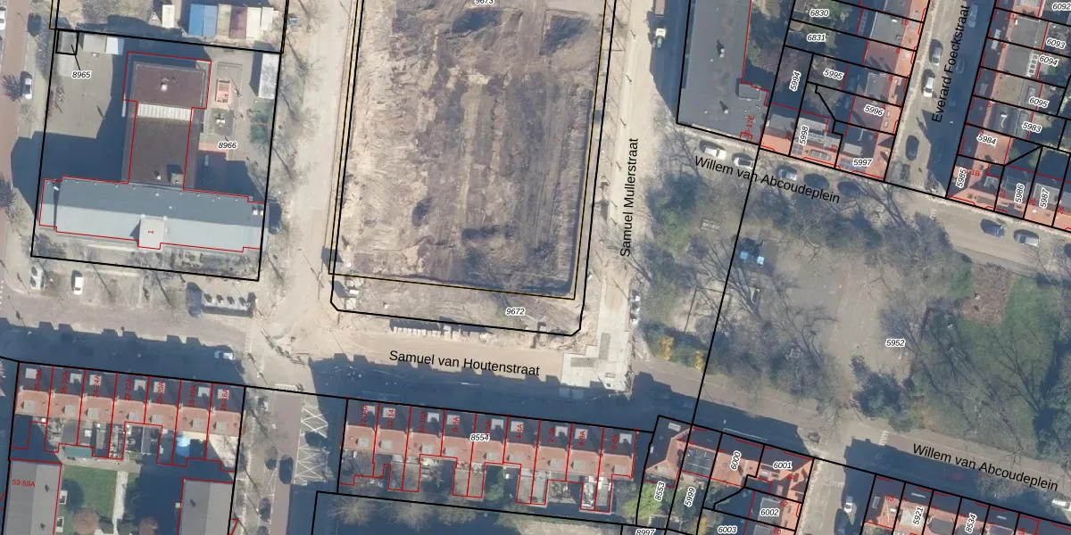 Het perceel waarop Samuel Mullerstraat 48 staat heeft een oppervlakte van 4845 m². Dit is een zeer groot perceel. De perceeloppervlakte wordt geregistreerd door het Kadaster. Gedetailleerde informatie over de maten van dit perceel kunt u vinden in het rapport Kadastrale kaart met maatvoering van Samuel Mullerstraat 48.