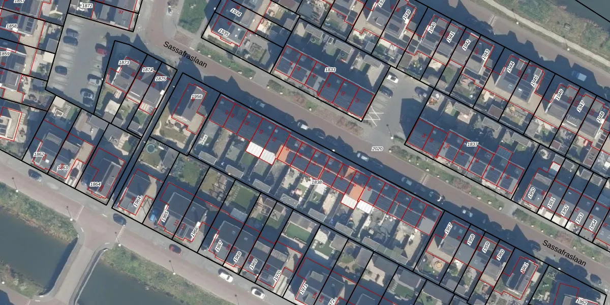 Het perceel waarop Sassafraslaan 59 staat heeft een oppervlakte van 1876 m². Dit is een zeer groot perceel. De perceeloppervlakte wordt geregistreerd door het Kadaster. Gedetailleerde informatie over de maten van dit perceel kunt u vinden in het rapport Kadastrale kaart met maatvoering van Sassafraslaan 59.