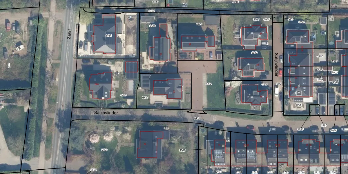 Gebruik de zoekbalk of klik op een perceel voor informatie over de adressen binnen dit perceel.