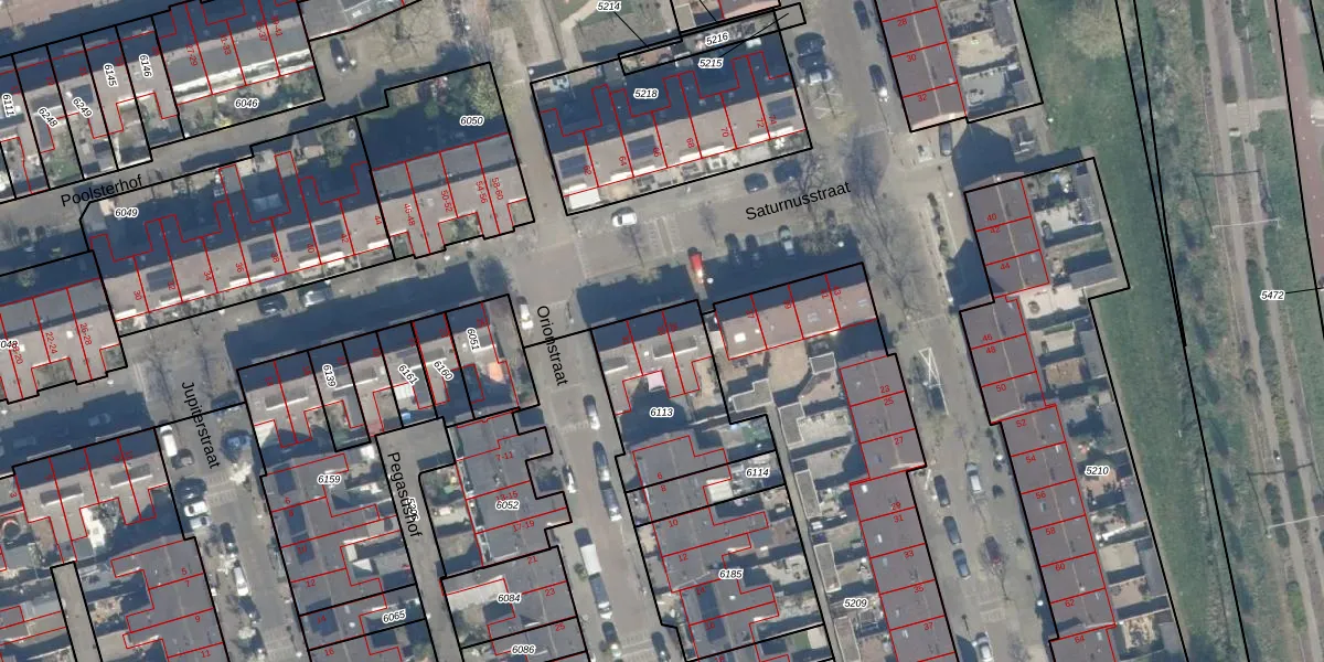 Het perceel waarop Saturnusstraat 33 staat heeft een oppervlakte van 457 m². Dit is een groot perceel. De perceeloppervlakte wordt geregistreerd door het Kadaster. Gedetailleerde informatie over de maten van dit perceel kunt u vinden in het rapport Kadastrale kaart met maatvoering van Saturnusstraat 33.