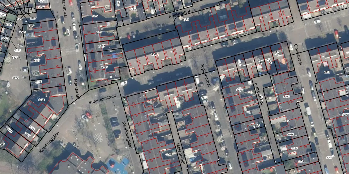 Het perceel waarop Saturnusstraat 7 staat heeft een oppervlakte van 4284 m². Dit is een zeer groot perceel. De perceeloppervlakte wordt geregistreerd door het Kadaster. Gedetailleerde informatie over de maten van dit perceel kunt u vinden in het rapport Kadastrale kaart met maatvoering van Saturnusstraat 7.