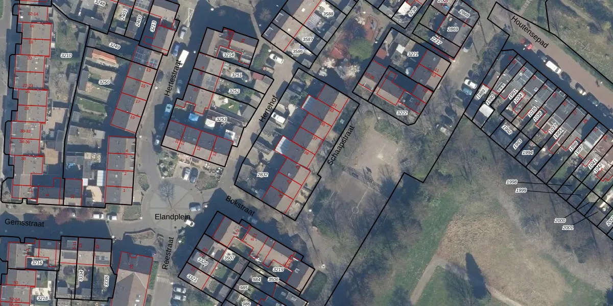 Het perceel waarop Schaapstraat 39 staat heeft een oppervlakte van 1025 m². Dit is een zeer groot perceel. De perceeloppervlakte wordt geregistreerd door het Kadaster. Gedetailleerde informatie over de maten van dit perceel kunt u vinden in het rapport Kadastrale kaart met maatvoering van Schaapstraat 39.