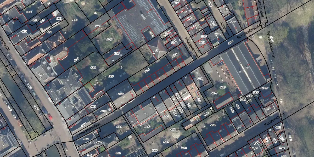 Schalkwijkstraat 12 is gelegen op kadastraal perceel UTT00B5054. Deze kadastrale aanduiding is uniek en wordt gebruikt door het Kadaster om eigendomsrechten en andere zakelijke rechten vast te leggen. Het perceel maakt onderdeel uit van de kadastrale gemeente Utrecht.