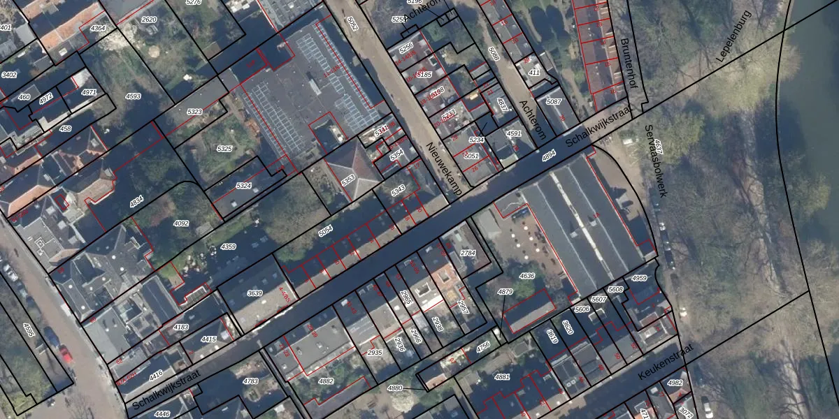 Schalkwijkstraat 20 is gelegen op kadastraal perceel UTT00B5343. Deze kadastrale aanduiding is uniek en wordt gebruikt door het Kadaster om eigendomsrechten en andere zakelijke rechten vast te leggen. Het perceel maakt onderdeel uit van de kadastrale gemeente Utrecht.