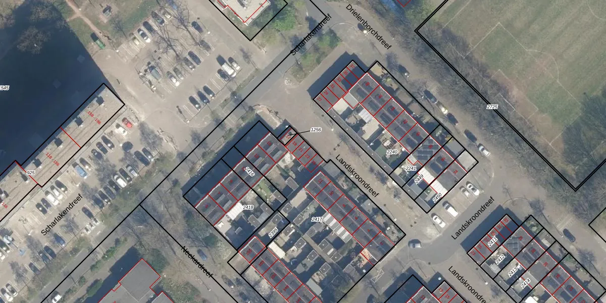 Het perceel waarop Scharlakendreef 21 staat heeft een oppervlakte van 1940 m². Dit is een zeer groot perceel. De perceeloppervlakte wordt geregistreerd door het Kadaster. Gedetailleerde informatie over de maten van dit perceel kunt u vinden in het rapport Kadastrale kaart met maatvoering van Scharlakendreef 21.