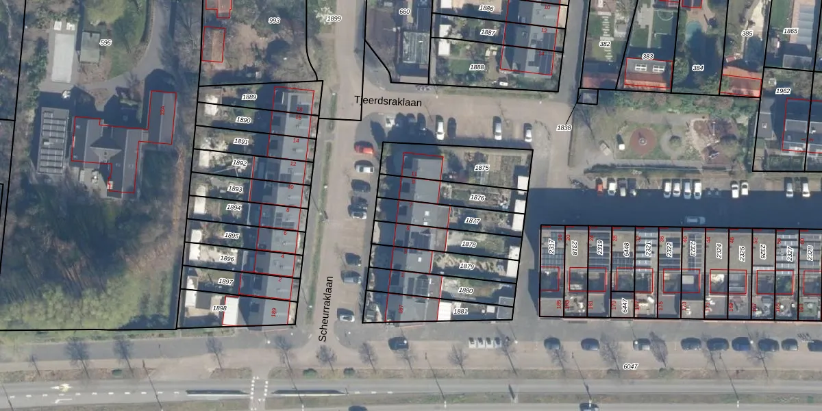 Gebruik de zoekbalk of klik op een perceel voor informatie over de adressen binnen dit perceel.